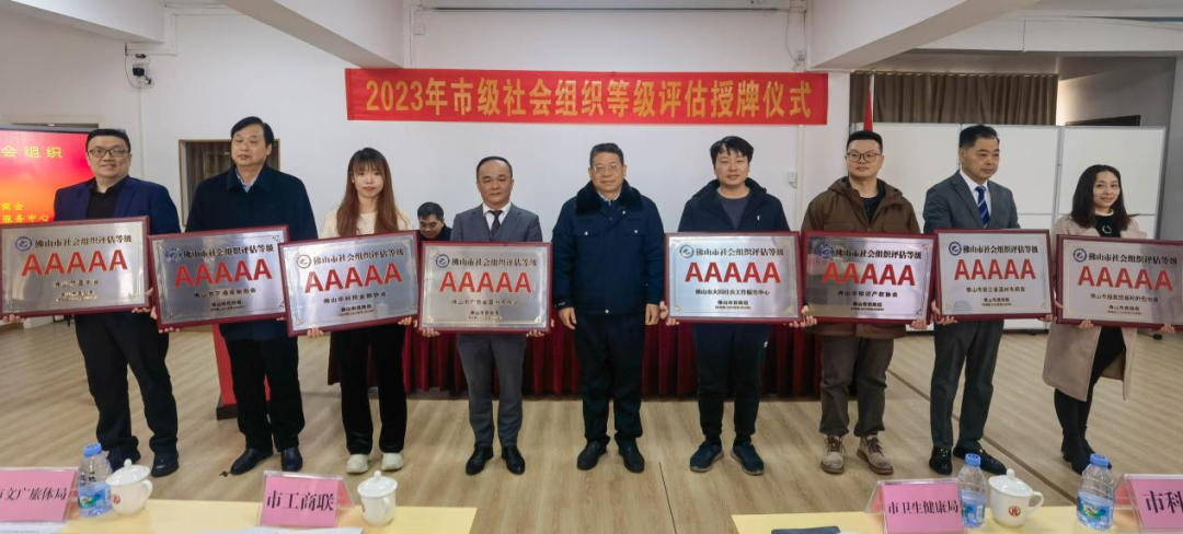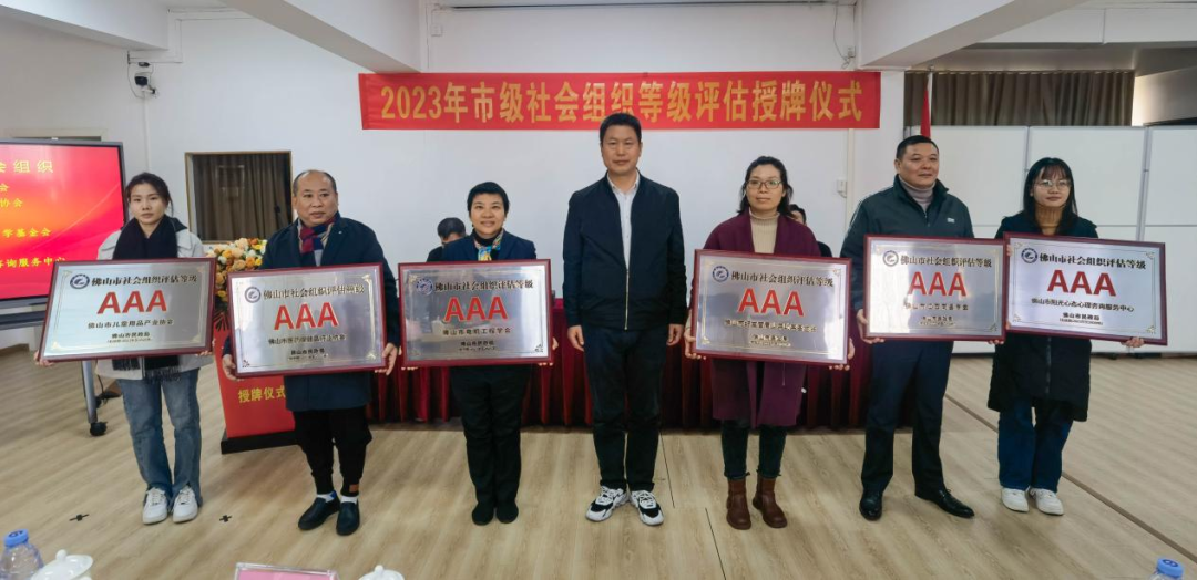 12月22日上午,佛山市民政局舉行2023年市級社會組織等級評估授牌儀式,為20家獲評3A以上等級的市級社會組織授牌。