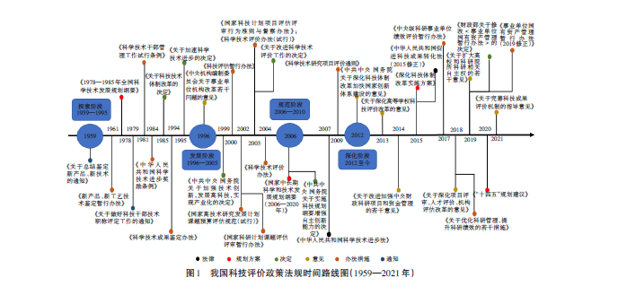 本文基于對已有學術文獻和相關政策法規(guī)的梳理,將我國科技評價制度建設劃分為探索、發(fā)展、規(guī)范、深化等4個發(fā)展階段。圖1為我國科技評價相關政策法規(guī)的時間路線圖。