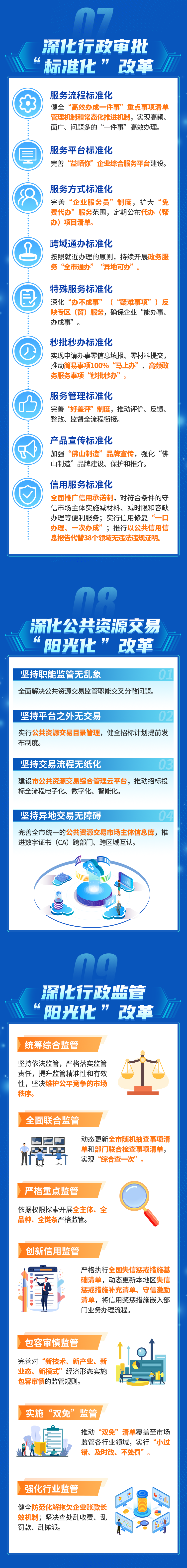 對于行政監(jiān)管領(lǐng)域,《方案》將持續(xù)堅持“精準化”改革。新增“堅持依法監(jiān)管,嚴格落實監(jiān)管責任,提升監(jiān)管精準性和有效性,堅決維護公平競爭的市場秩序”“健全防范化解拖欠企業(yè)賬款長效機制,堅決查處亂收費、亂罰款、亂攤”等改革措施,大力提升佛山行政執(zhí)法水平,不斷優(yōu)化法治化營商環(huán)境。