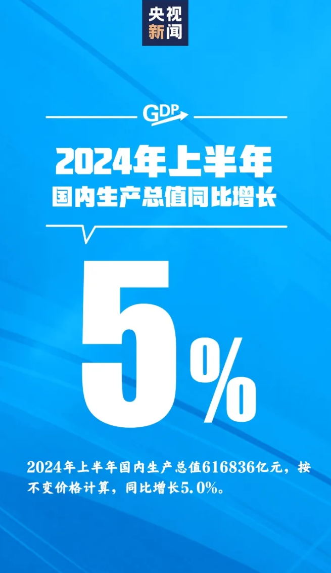 也是在今天,中國經(jīng)濟(jì)半年數(shù)據(jù)公布。上半年,我國國內(nèi)生產(chǎn)總值超過61萬億元,同比增長5.0%。既有量的增長,也有質(zhì)的提升。看結(jié)構(gòu),在持續(xù)優(yōu)化。制造業(yè)在GDP中占比持續(xù)提高,特別是裝備制造業(yè)增加值增長7.8%,增速已經(jīng)連續(xù)11個(gè)月高于工業(yè)平均水平,制造業(yè)高端化、智能化、綠色化步伐加快。再看動(dòng)力,新字當(dāng)頭。新質(zhì)生產(chǎn)力加快形成,今年上半年,高技術(shù)制造業(yè)投資和高技術(shù)服務(wù)業(yè)投資同比均保持兩位數(shù)增長。總體來看,我國經(jīng)濟(jì)轉(zhuǎn)型升級(jí)穩(wěn)步推進(jìn)。主動(dòng)轉(zhuǎn)型,主動(dòng)求變,持續(xù)為中國經(jīng)濟(jì)注入強(qiáng)勁動(dòng)力。