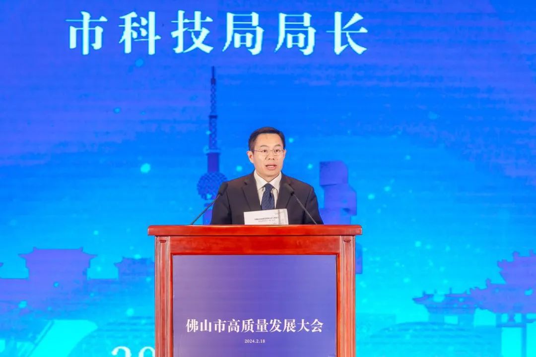 2月18日,佛山市高質(zhì)量發(fā)展大會召開,現(xiàn)場市科技局局長薛立偉發(fā)言。/佛山市新聞傳媒中心記者周春、王澍攝