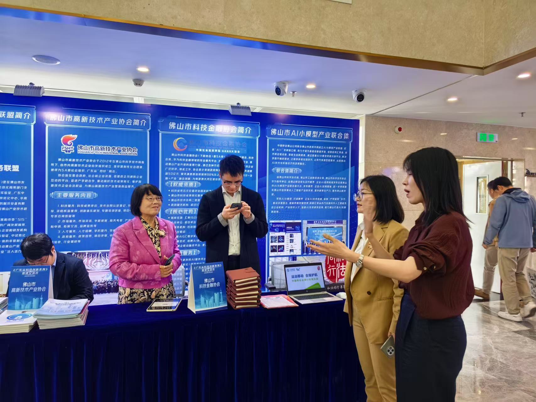 在科創(chuàng)及法律服務(wù)產(chǎn)品展示區(qū),佛山市科技金融協(xié)會重點展出了“政銀企聯(lián)動融資服務(wù)平臺” 及 AIGC數(shù)字人創(chuàng)作實驗室 等核心創(chuàng)新成果,特別是 協(xié)會首位AI員工“金小智”,憑借其在政策解讀、融資輔導、法律合規(guī)等方面的智能服務(wù),吸引了眾多參會領(lǐng)導和企業(yè)代表的關(guān)注。