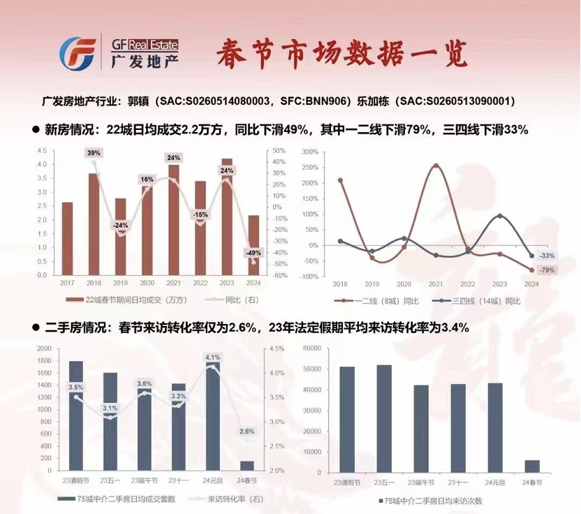 根據(jù)廣發(fā)的統(tǒng)計(jì),2024年春節(jié)期間來(lái)訪轉(zhuǎn)化率僅為2.6%,23年法定假期平均來(lái)訪轉(zhuǎn)化率為3.4%,24年元旦假期來(lái)訪轉(zhuǎn)化率達(dá)4.1%。