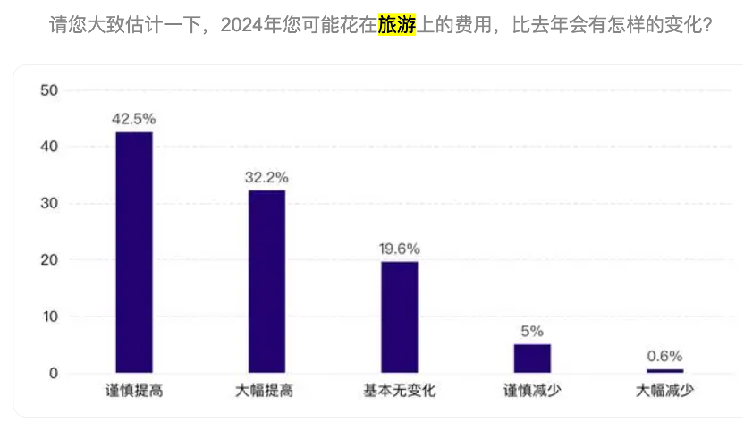 春節(jié)之前,每日經(jīng)濟(jì)新聞曾經(jīng)做過(guò)一個(gè)問(wèn)卷調(diào)查,問(wèn)大家在2024年會(huì)不會(huì)增加旅游開(kāi)支。