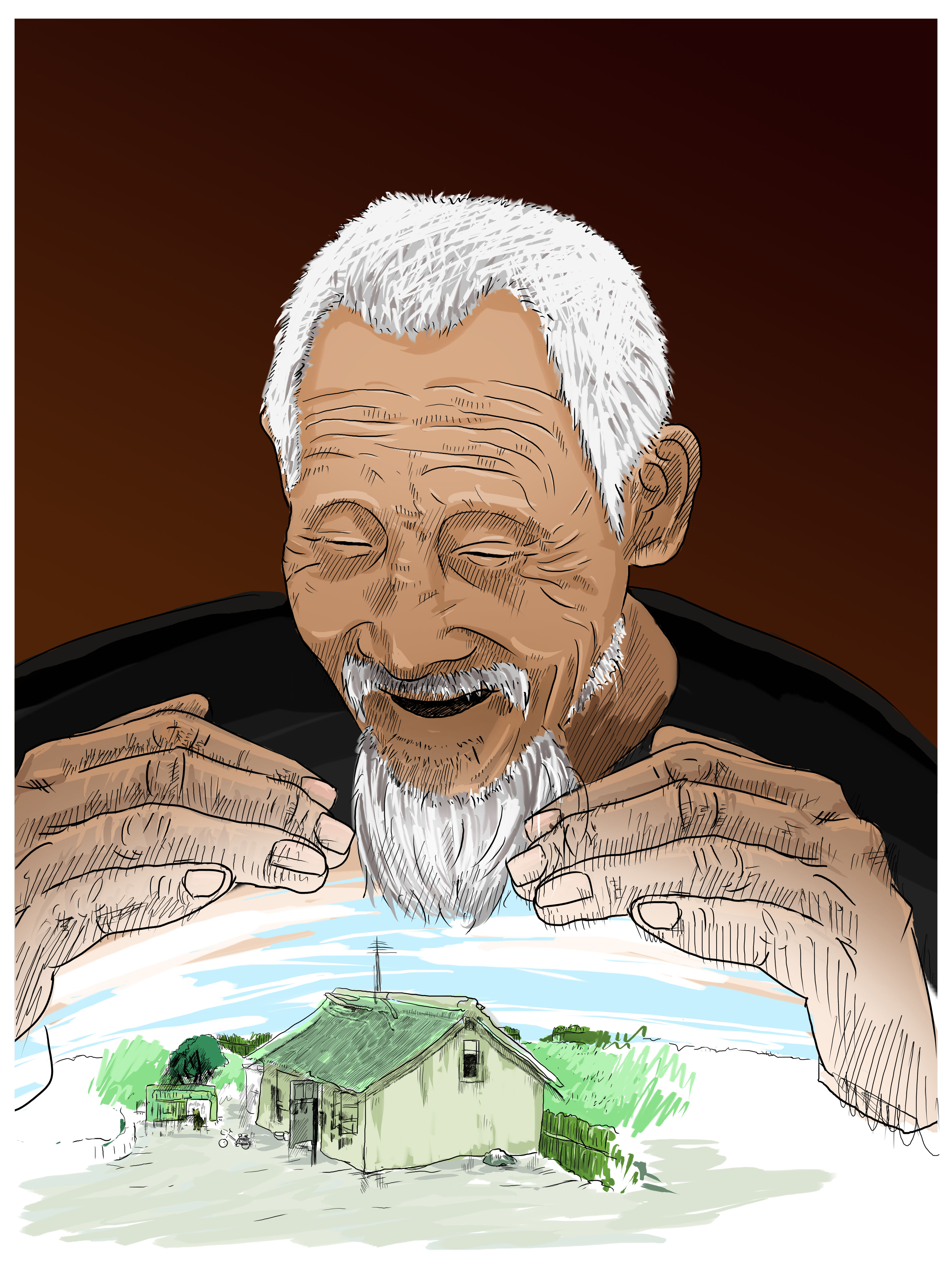遮風(fēng)擋雨護(hù)我全,背影巋然穩(wěn)如山。待到須發(fā)皆霜盡,懷橘臥冰慰親顏。?注:懷橘、臥冰出自《二十四孝》典故,分別指后漢人陸績(jī)懷橘遺親、晉人王祥臥冰求鯉。?