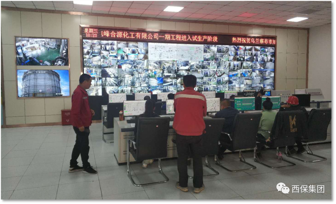項(xiàng)目總負(fù)責(zé)武曉東(左一)在中控室指揮調(diào)度試生產(chǎn)全過(guò)程